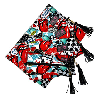 Dark Blue Stripe Print Contrast Collar Split Neck Flutter Sleeve Short Dress