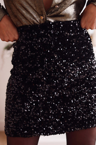 Black Sequined Long Sleeve Crew Neck Cropped Blouse