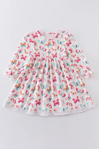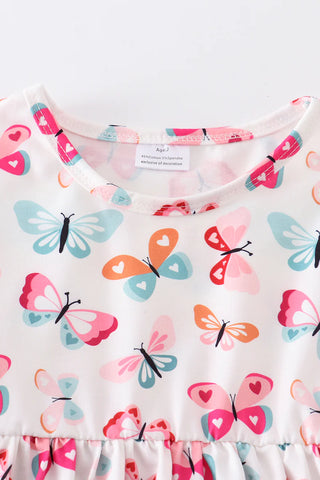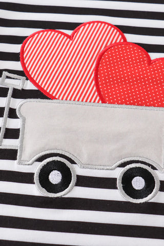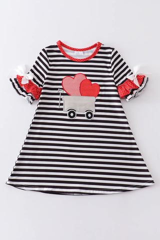 Black stripe heart applique bell sleeve dress