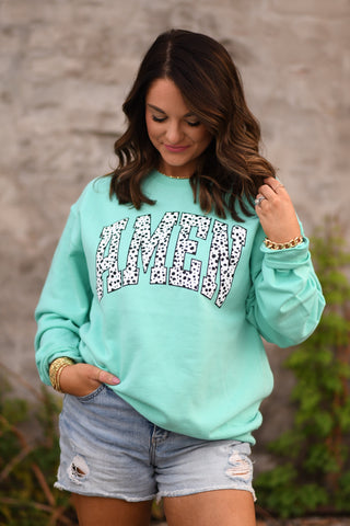 Mineral Blue Solid Waffle Knit Patchwork Raglan Sleeve Sweatshirt