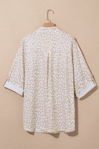Apricot Leopard Tab Sleeve V Neck Plus Size Top