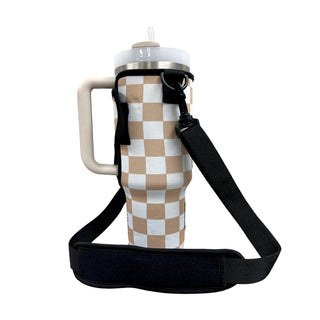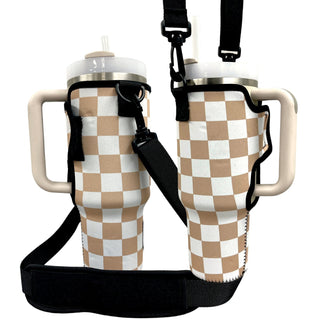 Tan Checkerboard 16-24oz Soda & Water Bottle / Tallboy Can Handler™