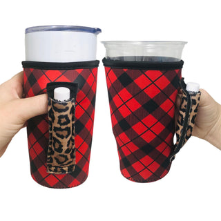 Red Plaid w/ Leopard 20oz Large Coffee / Tea / Tumbler Handler™