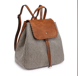 Saffron 2 Tone Straw-Textured Backpack w/ Whipstitch Design