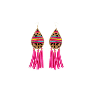 Hot Pink Leopard Tear Drop Tassel Earrings