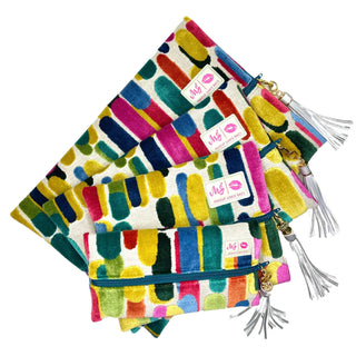 As seen on Shark Tank, MJ makeup bags feature an extended zipper, allowing easy access to all contents without the bag spilling. Our boutique is where to buy Makeup Junkie Bags in more than 500 trendy styles and seven sizes. Handmade in the USA, these makeup bags are lifetime guaranteed and multi-use, capable of also carrying credit cards, toiletries and other supplies.