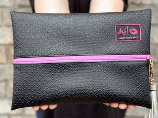 As seen on Shark Tank, MJ makeup bags feature an extended zipper, allowing easy access to all contents without the bag spilling. Our boutique is where to buy Makeup Junkie Bags in more than 500 trendy styles and seven sizes. Handmade in the USA, these makeup bags are lifetime guaranteed and multi-use, capable of also carrying credit cards, toiletries and other supplies.