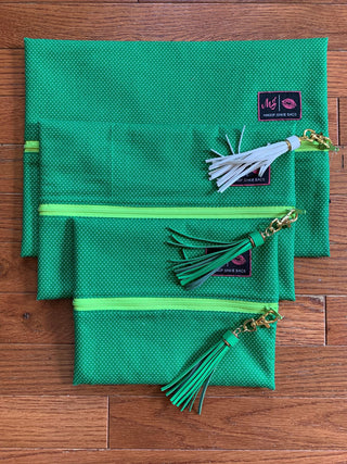 As seen on Shark Tank, MJ makeup bags feature an extended zipper, allowing easy access to all contents without the bag spilling. Our boutique is where to buy Makeup Junkie Bags in more than 500 trendy styles and seven sizes. Handmade in the USA, these makeup bags are lifetime guaranteed and multi-use, capable of also carrying credit cards, toiletries and other supplies.
