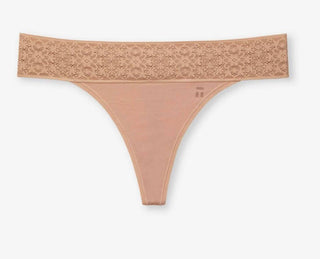Tommy John - Women's Cool Cotton Thong Lace Waist- Maple Sugar