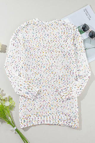 White Multicolor Dotted Rib Knit Long Sleeve Cardigan