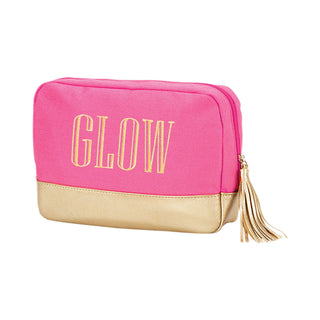 Gold Glow Embroidered Hot Pink Cabana Cosmetic Bag