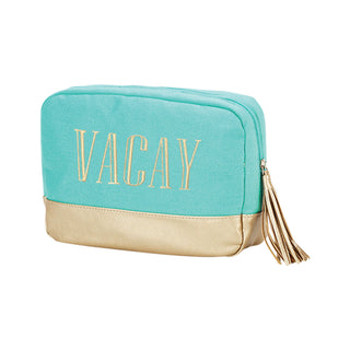 Gold Vacay Embroidered Mint Cabana Cosmetic Bag