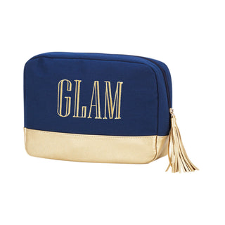 Gold Glam Embroidered Navy Cabana Cosmetic Bag