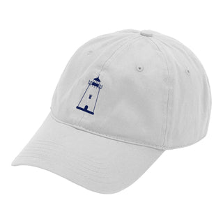 Navy Lighthouse Embroidered Tan Stripe Tote
