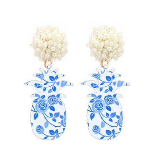 Blue Floral Acrylic Pineapple Earrings